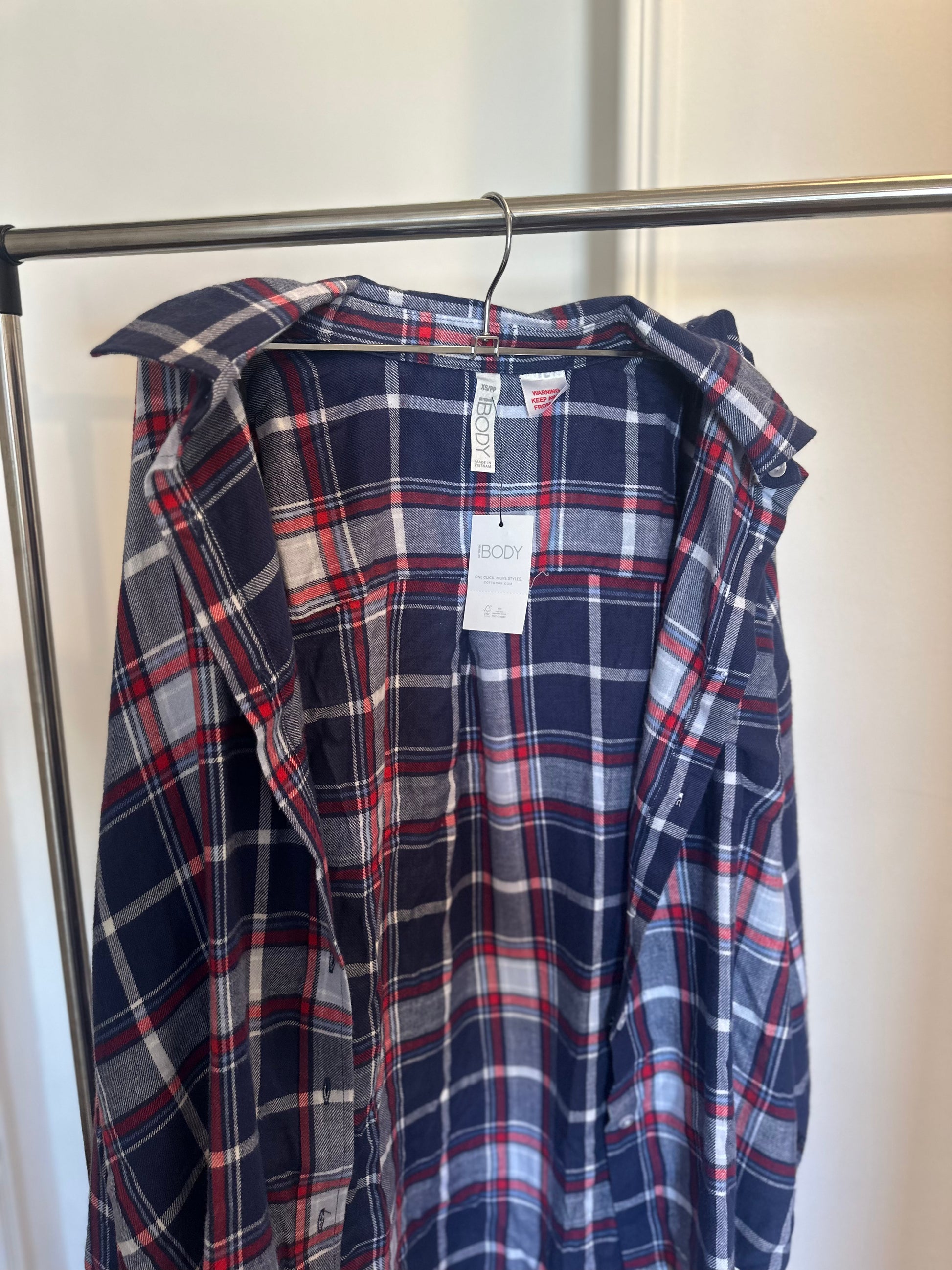 Cotton On flannel boyfriend pyjama shirt in navy and red check — XS