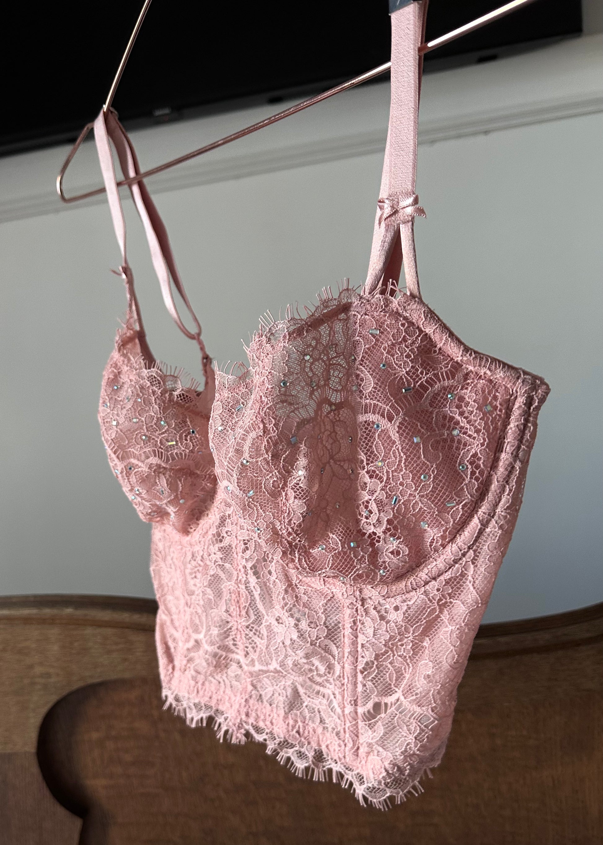 Victoria's Secret embellished lace balconette bustier in pink — 32DD